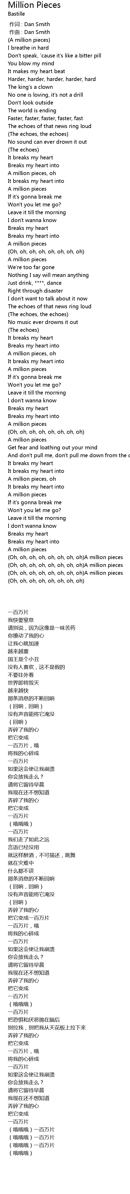 | [03:47.33] | Oh, oh, oh, oh, oh, oh, oh, oh A million pieces |
