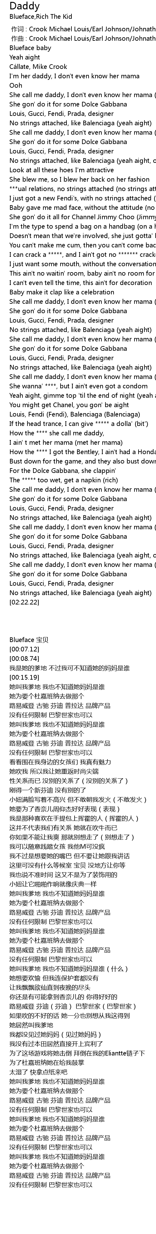 | [01:42.49] | How the **** she call me daddy, |