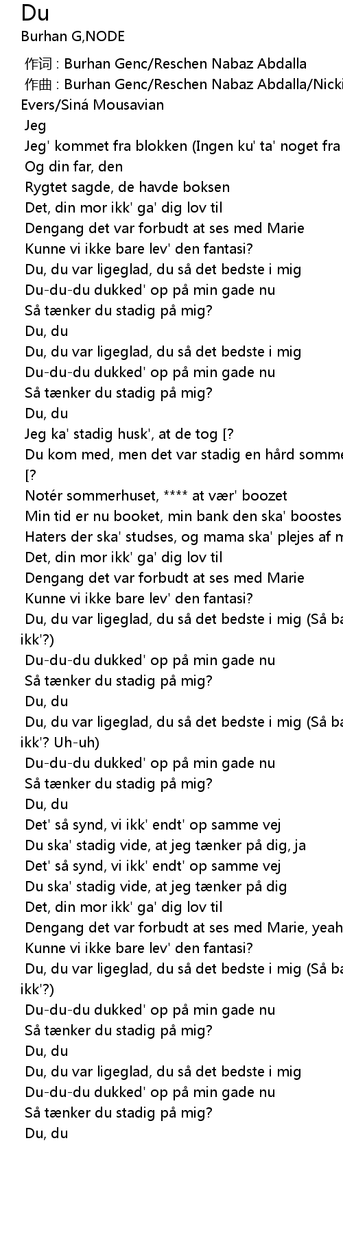 | [02:35.278] | Du, du var ligeglad, du s det bedste i mig |