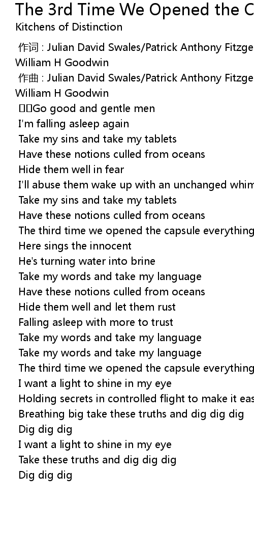 | [00:00.000] | 作词 : Julian David Swales/Patrick Anthony Fitzgerald/Daniel William H Goodwin |
