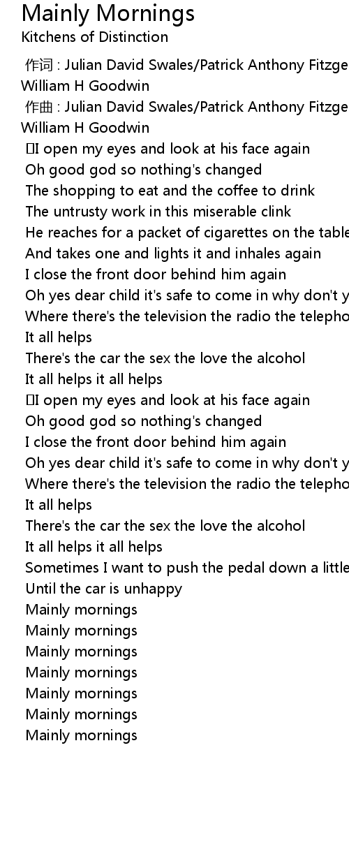 | [00:01.000] | zuo qu : Julian David Swales Patrick Anthony Fitzgerald Daniel William H Goodwin |