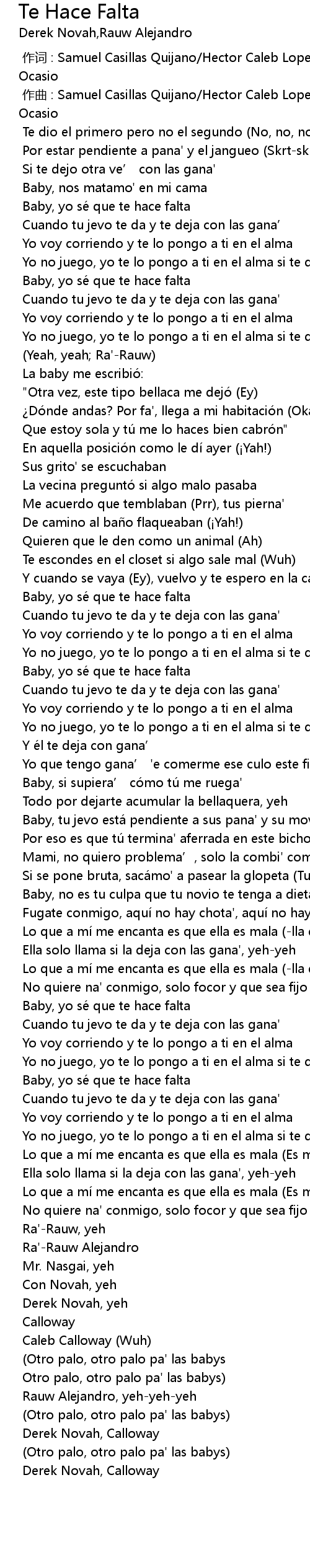 | [02:42.872] | Baby, yo sé que te hace falta |