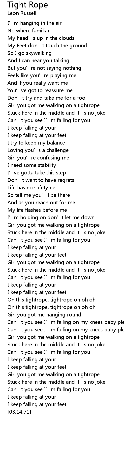 | [02:35.20] | Girl you got me walking on a tightrope |