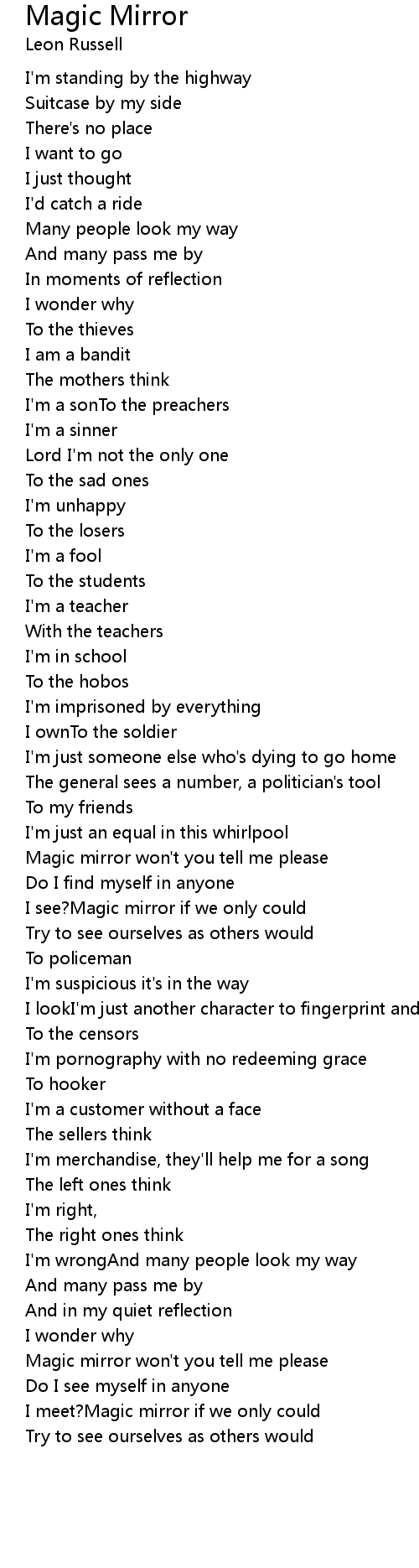 I meet?Magic mirror if we only could |