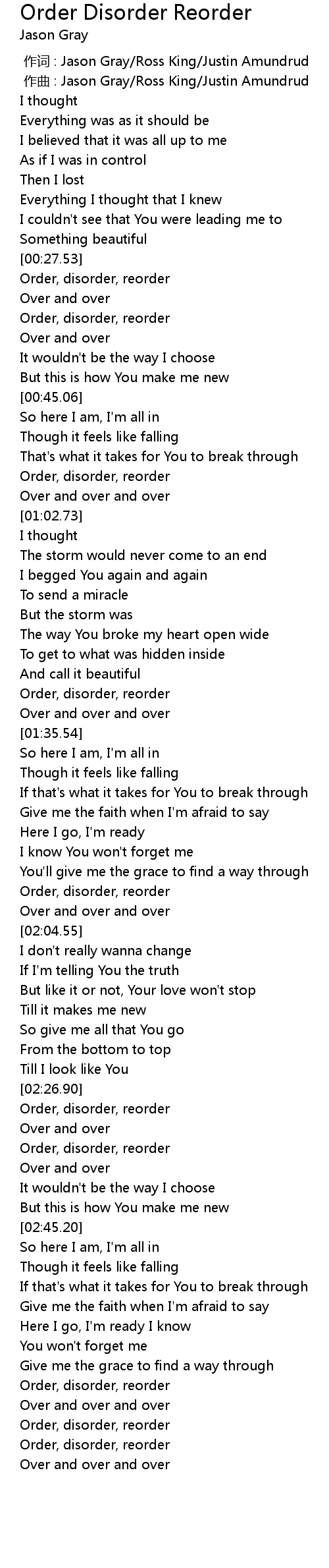 | [00:00.000] | 作词 : Jason Gray/Ross King/Justin Amundrud |