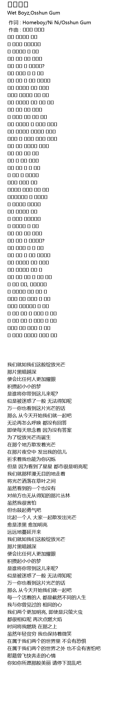 | [00:00.000] | 作词 : Homeboy/Ni Ni/Osshun Gum |