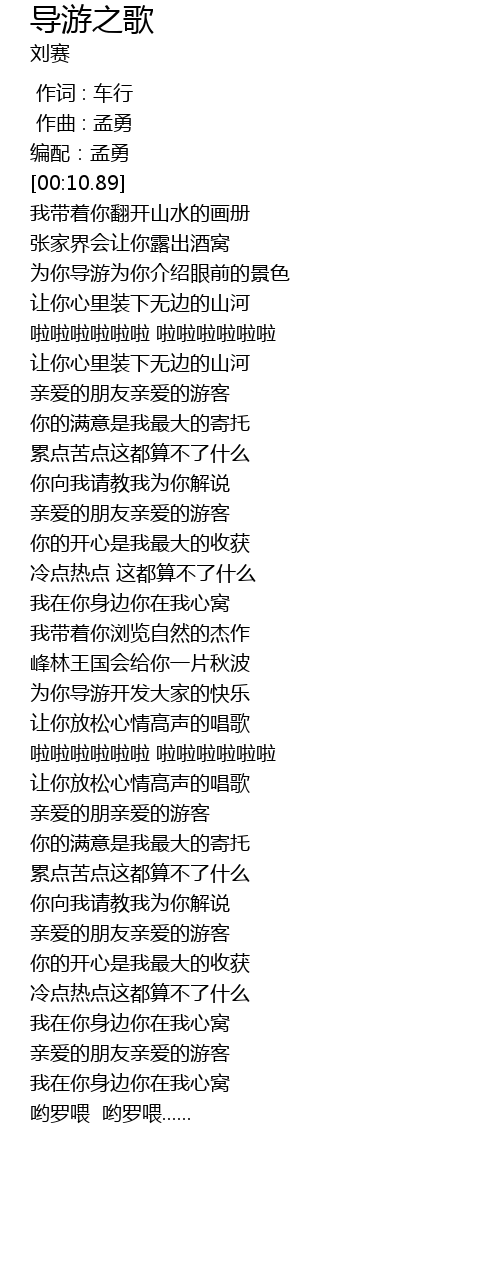 | [02:25.26] | 亲爱的朋亲爱的游客 |