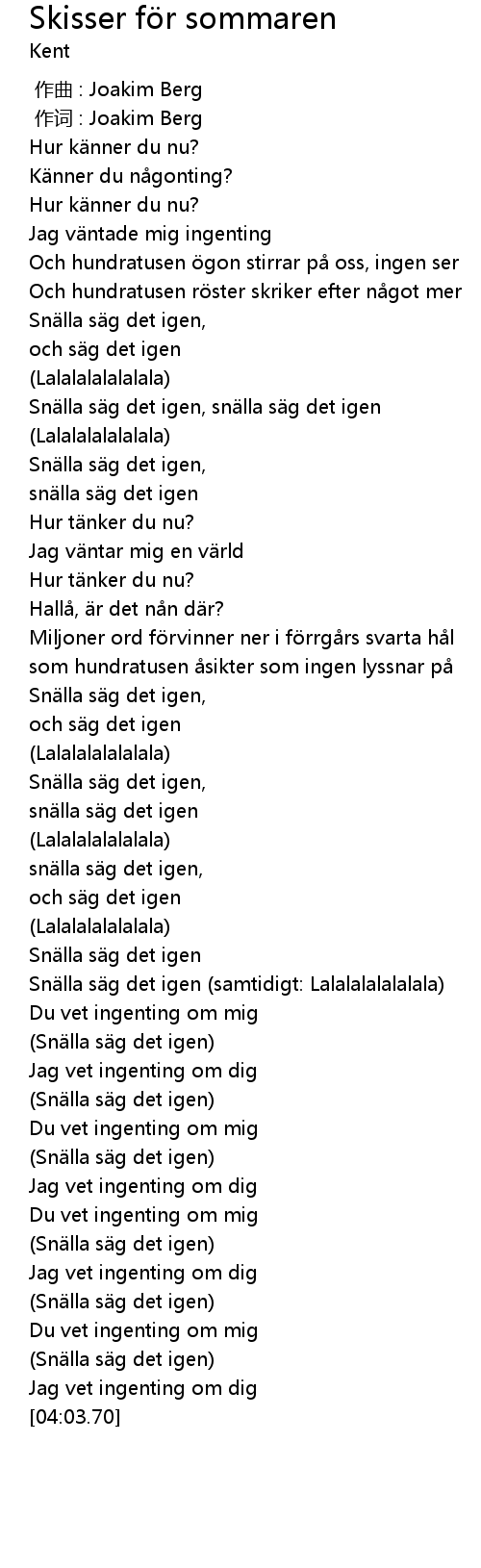 | [03:25.26] | Snälla säg det igen (samtidigt: Lalalalalalalala) |