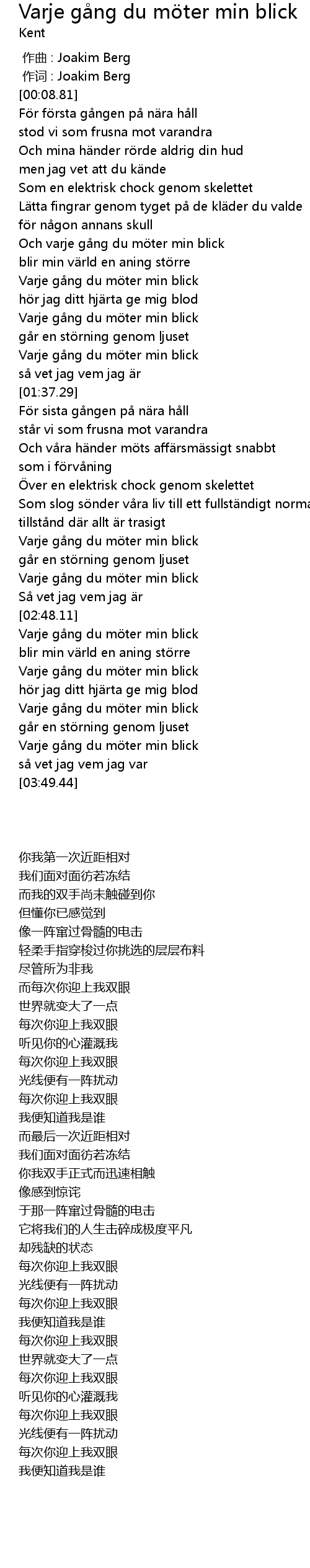 | [00:55.76] | Och varje g ng du m ter min blick |