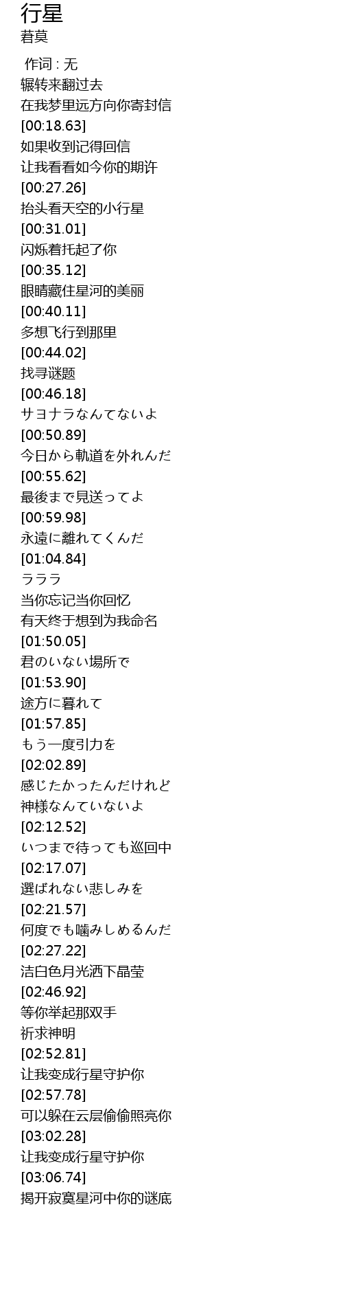| [03:02.94] | 让我变成行星守护你 |