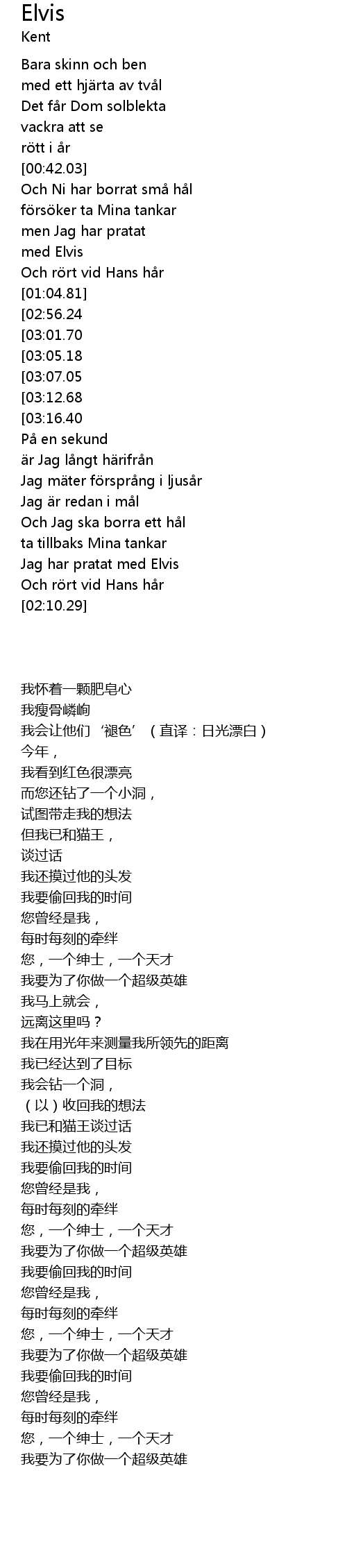 | [02:03.96] | Jag har pratat med Elvis |