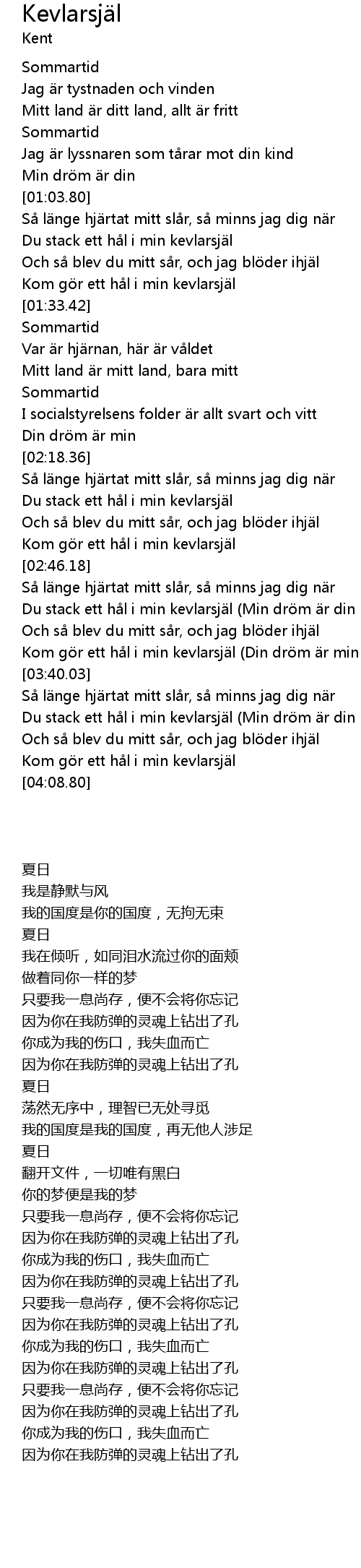 | [03:47.06] | Du stack ett hål i min kevlarsjäl (Min dröm är din nu) |