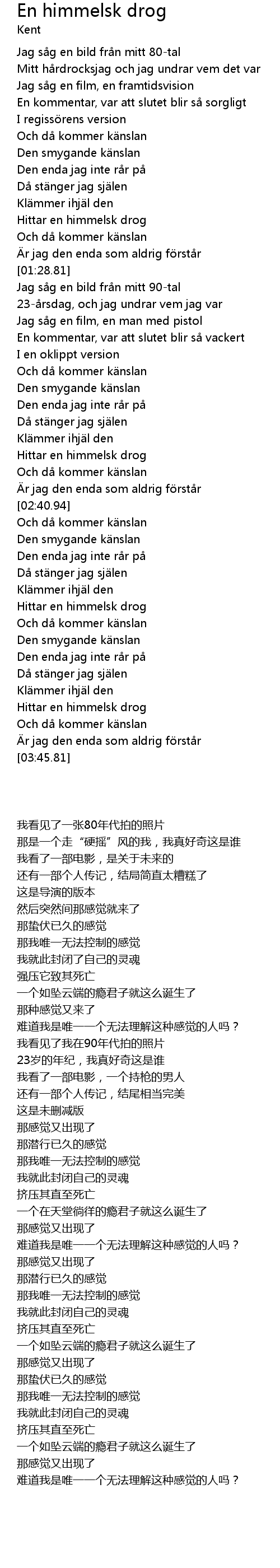 | [02:01.36] | En kommentar, var att slutet blir så vackert |