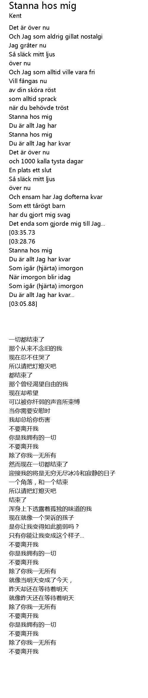 | [03:48.81][03:35.73][03:22.56][02:03.55] | Stanna hos mig |