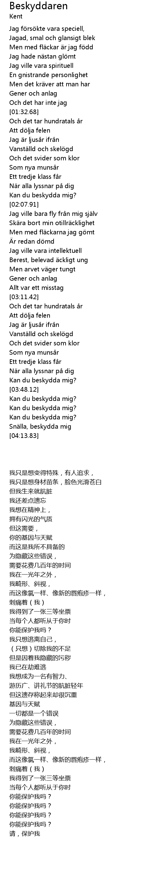 | [00:39.22] | Jag f rs kte vara speciell, |