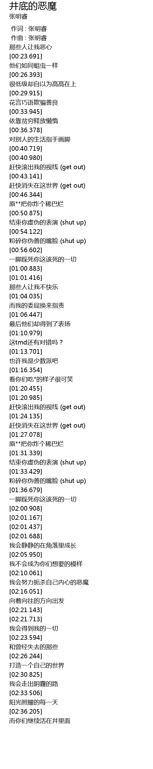 | [00:51.957] | 结束你虚伪的表演 (shut up) |