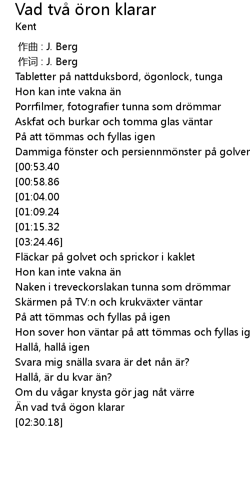 | [03:11.06][01:04.00] | Hallå, är du kvar än? |