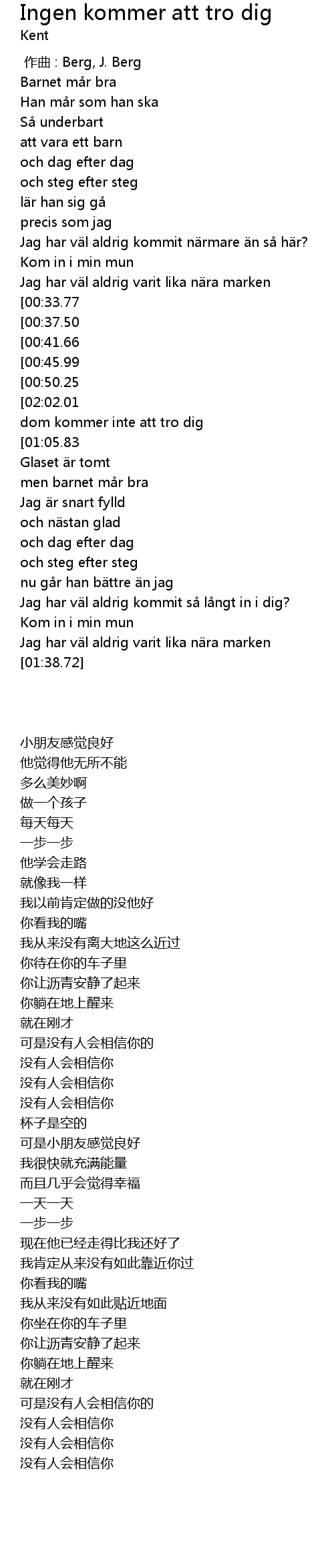 | [01:40.78][00:33.77] | Du stannar i din bil |