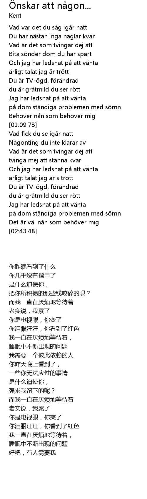 | [02:37.39] | Det r v l n n som beh ver mig |