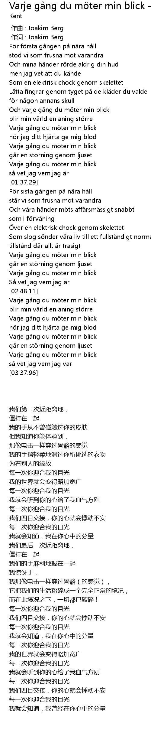 | [00:55.76] | Och varje g ng du m ter min blick |