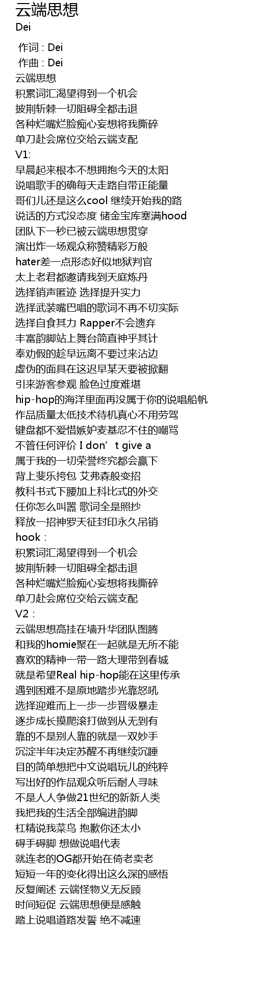 | [02:13.902] | 目的简单想把中文说唱玩儿的纯粹 |