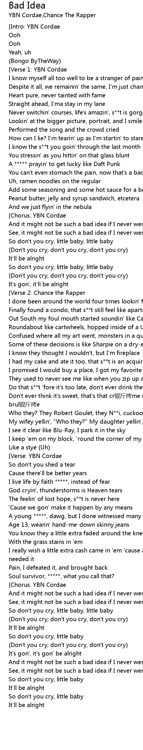 | [01:49.701] | Do that s**t 'fore it's too late, don't ever drink the Kool-Aid |