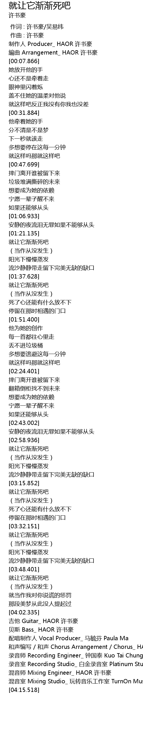 | [04:12.586] | 混音师 Mixing Engineer_ HAOR 许书豪 |