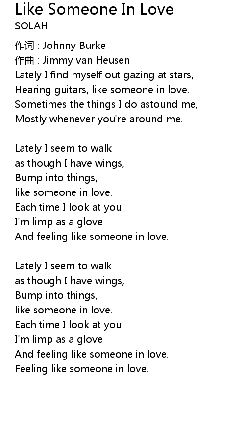 | Song | Like Someone In Love |