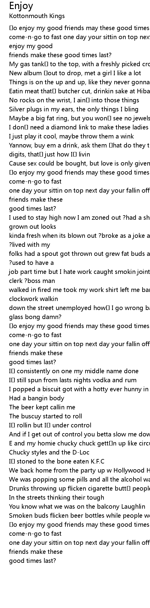 | o enjoy my good friends may these good times last cuz in this lifetime they | |
