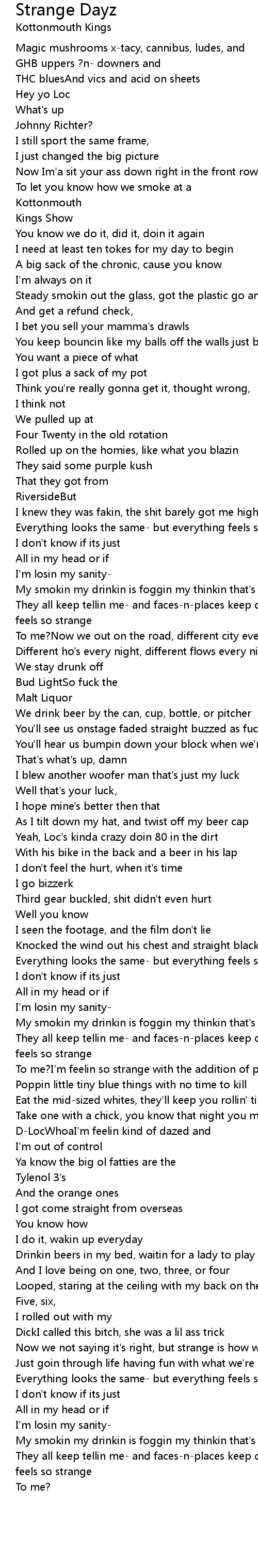 They all keep tellin me- and faces-n-places keep changin erasin and everything feels so strange |