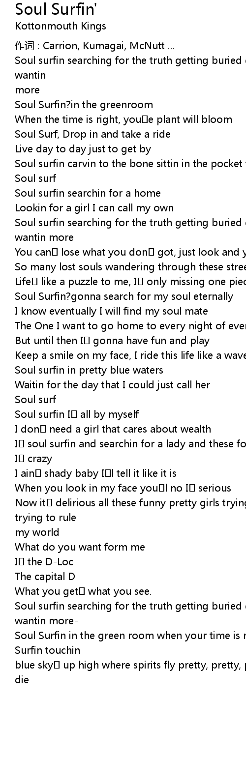 | Soul surfin searching for the truth getting buried deep inside and come out wantin more | |