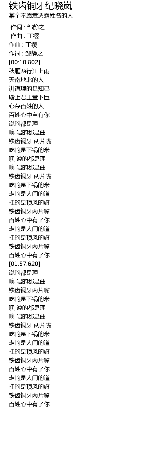 | [01:46.099] | 铁齿铜牙两片嘴 |