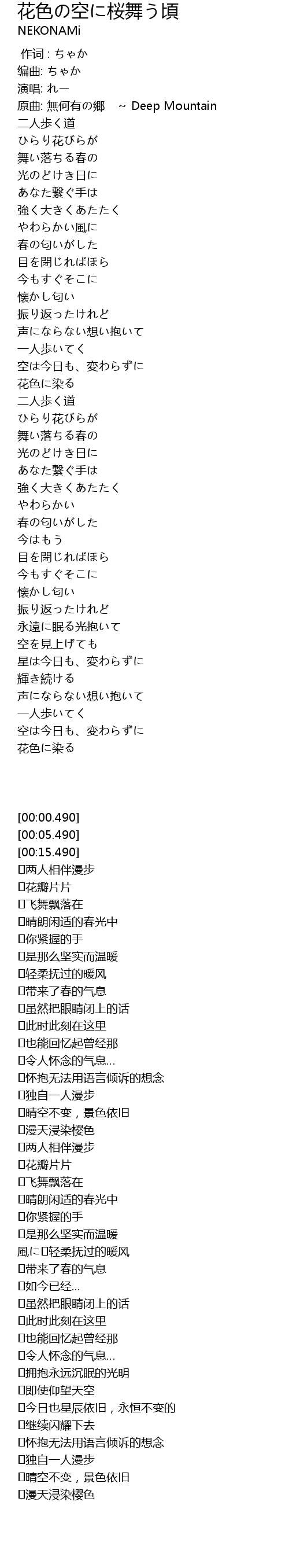 | [00:15.490] | yuán qǔ: wú hé yǒu xiāng Deep Mountain |