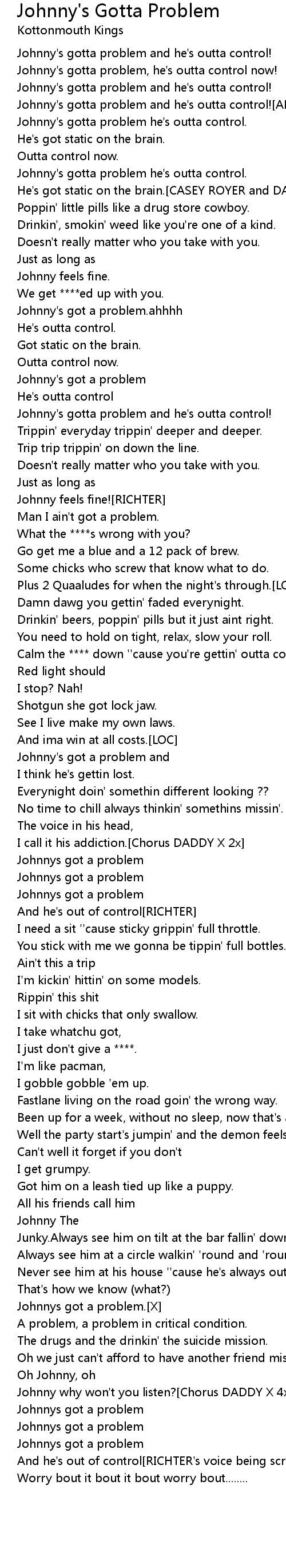 Johnny's gotta problem, he's outta control now! |