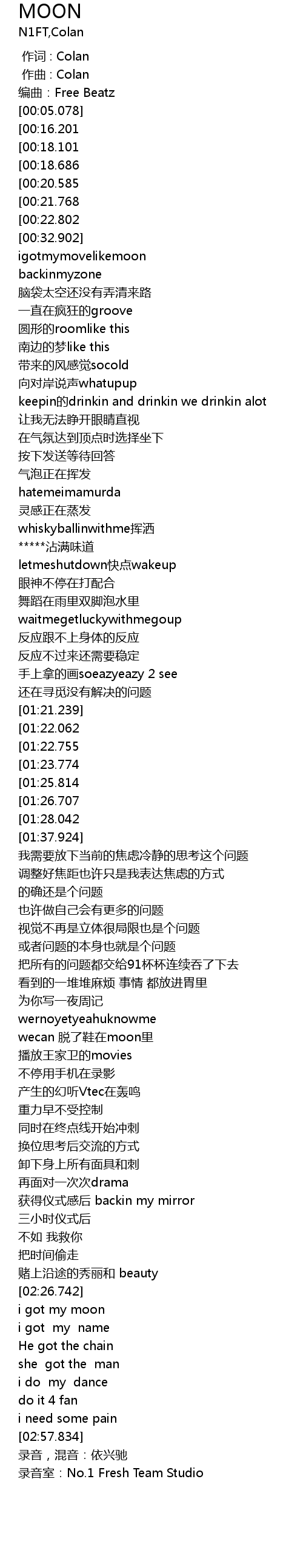 | [03:00.693] | 录音室:No.1 Fresh Team Studio |