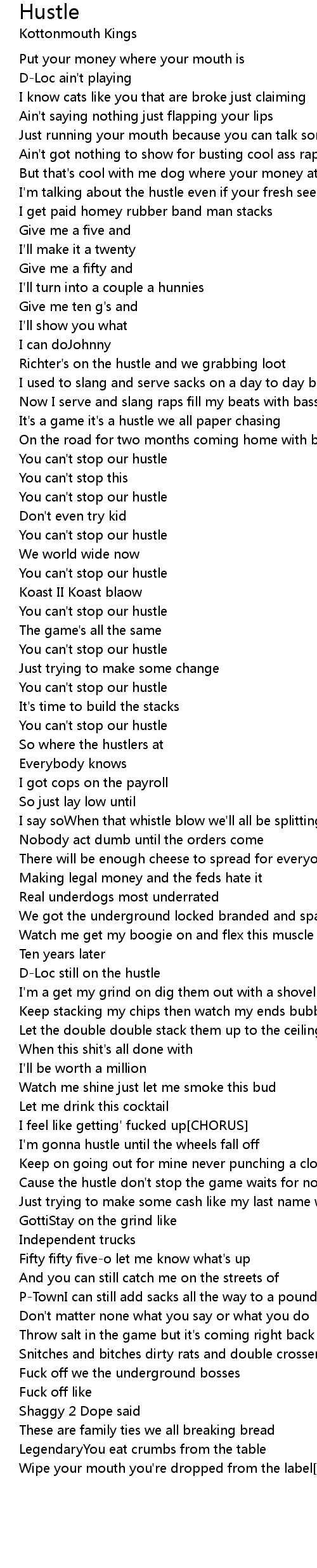 Cause the hustle don't stop the game waits for nobody |