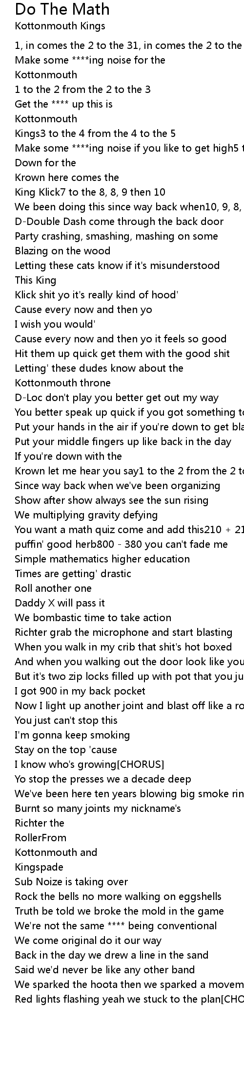 You want a math quiz come and add this210 + 210 you get the password70 x 6 you puffin' good herb800 - 380 you can't fade me |