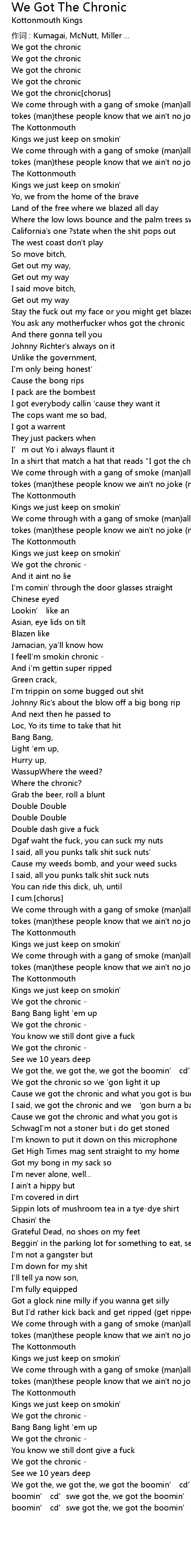 | We got the chronic chorus | |