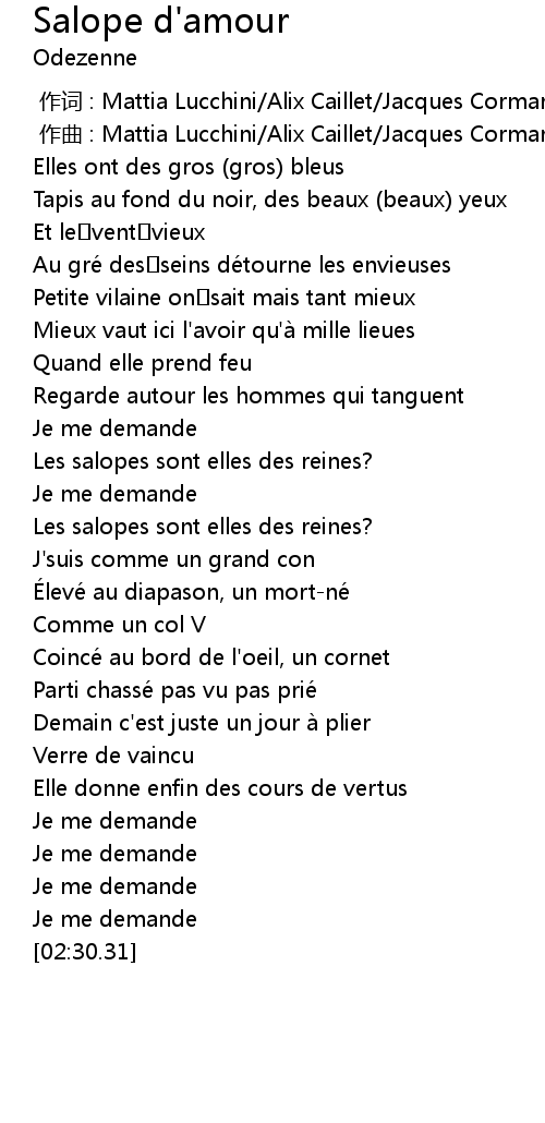 | [00:00.000] | zuo ci : Mattia Lucchini Alix Caillet Jacques Cormary |