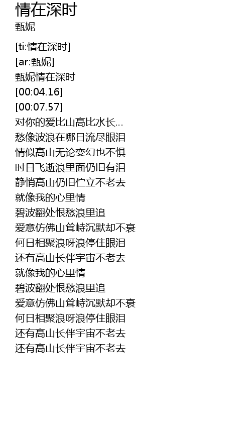 | [00:11.32] | duì nǐ de ài bǐ shān gāo bǐ shuǐ zhǎng |