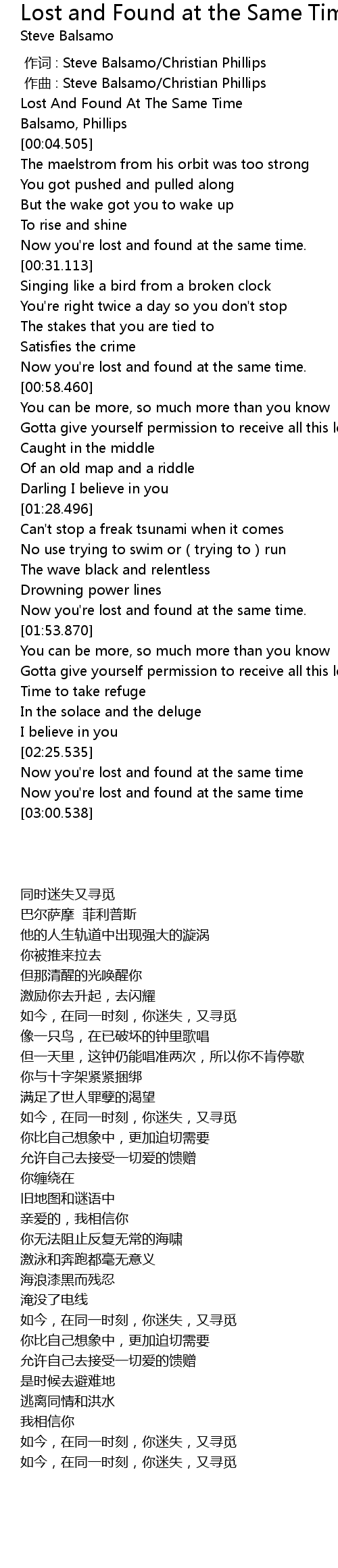 | [02:53.112] | Now you' re lost and found at the same time |