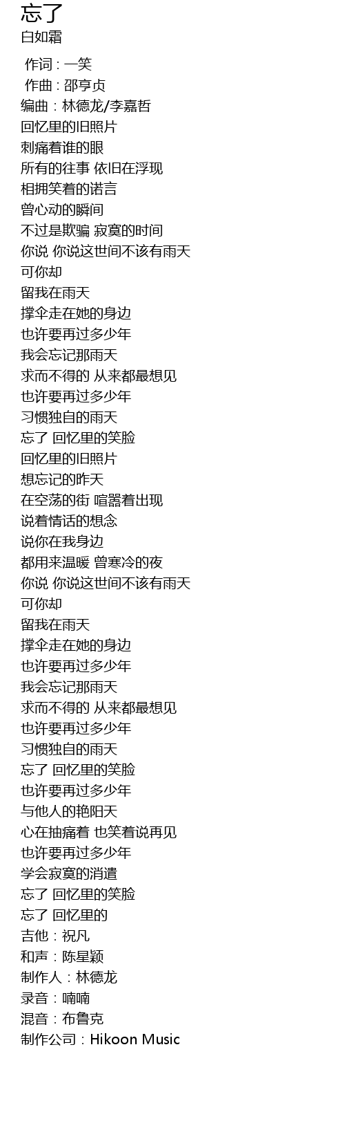 | [03:06.127] | 忘了 回忆里的笑脸 |