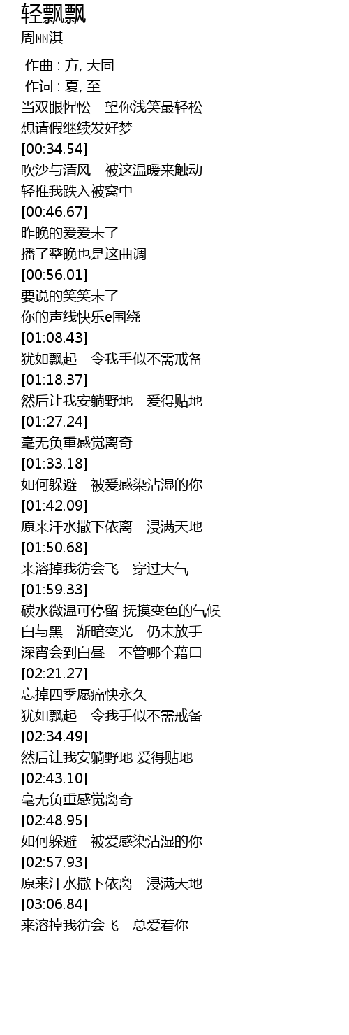 | [03:07.68] | 来溶掉我彷会飞 总爱着你 |