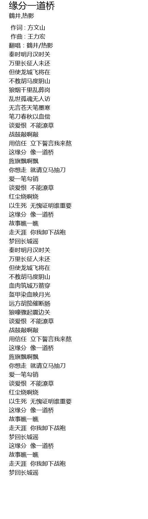 | [01:37.145] | 梦回长城谣 |