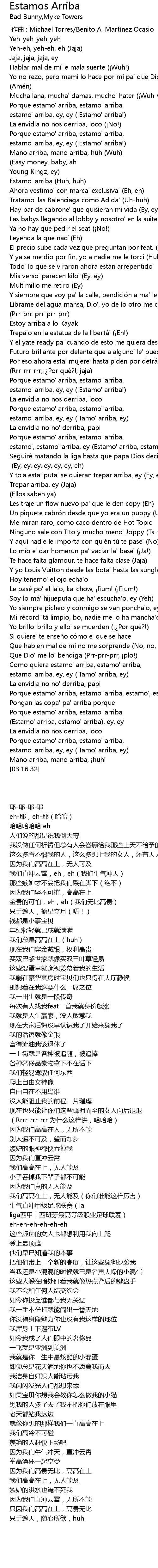 | [02:52.29] | estamo' arriba, ey, ey ('Tamo' arriba, ey) |