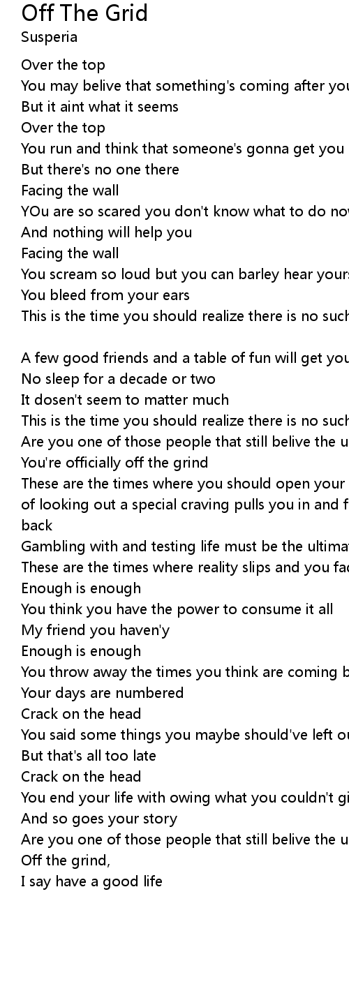| Off the grind, | |