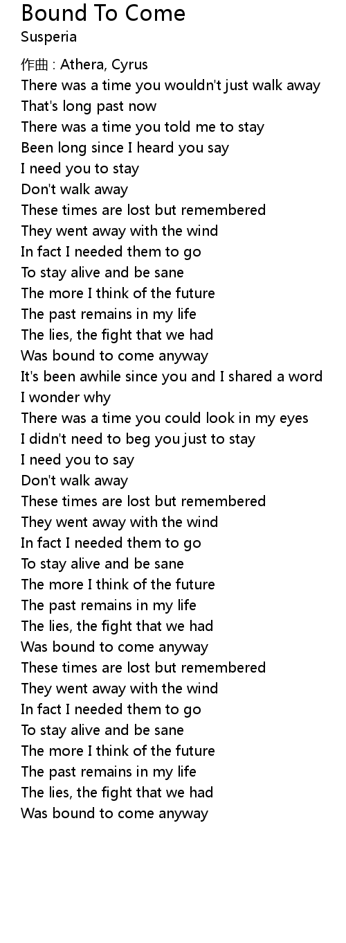 | Song | Bound To Come |