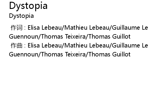| [00:00.00-1] | 作曲 : Elisa Lebeau/Mathieu Lebeau/Guillaume Le Guerson/Kévin Guennoun/Thomas Teixeira/Thomas Guillot |