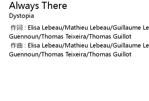 | [00:00.00-1] | zuò qǔ : Elisa Lebeau Mathieu Lebeau Guillaume Le Guerson Ké vin Guennoun Thomas Teixeira Thomas Guillot |