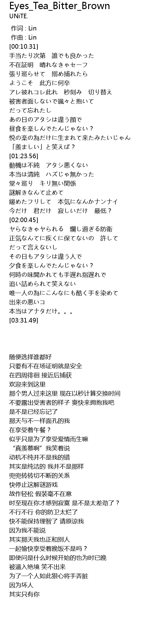 | [03:15.37] | 唯一人の為にこんなにも酷く手を染めて |